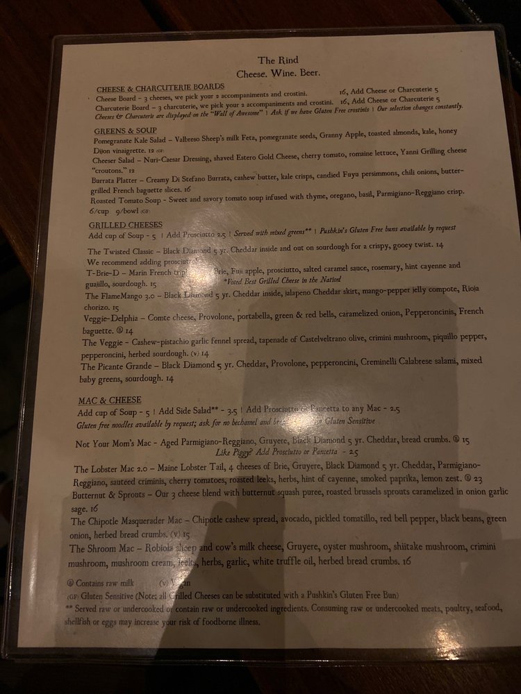 The Rind is a New American restaurant located in Sacramento, CA, offering a variety of cheesy delights and a cozy ambiance that is perfect for a casual dining experience. With a focus on cheese-centric dishes like mac and cheese, grilled cheese sandwiches, and cheese boards, this eatery is a cheese lover's paradise. The menu also includes vegan and vegetarian options, ensuring that there is something for everyone to enjoy. Customers have raved about the delicious food, friendly staff, and unique atmosphere, making it a must-visit spot in the area. Whether you're craving a cheesy snack or a hearty meal, The Rind promises to satisfy your cheese cravings and leave you wanting more. Don't miss out on their happy hour specials and beer and wine offerings, which pair perfectly with their cheesy creations.